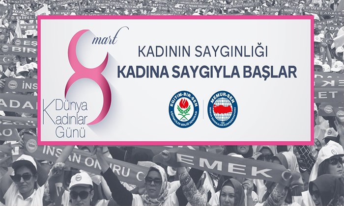 Eğitim-Bir-Sen olarak, insan ve medeniyet değerlerini muhafaza edip yüceltecek toplumun, ancak sağlam aile yapısı ve güçlü kadınla mümkün olacağına inanıyor; Dünya Kadınlar Günü’nün kadınların sorunlarının çözümü için yeni bir başlangıç ve imkân olmasını temenni ediyoruz.