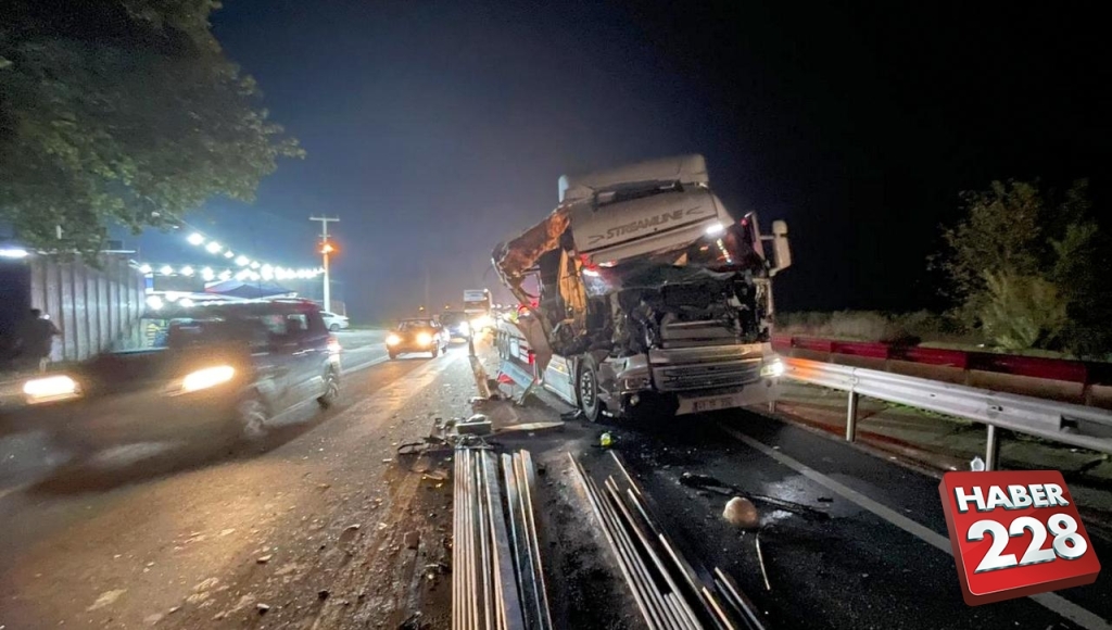 Sakarya-Bilecik D-650 kara yolunda kamyona çarpan demir yüklü tırın sürücüsü yaralandı.