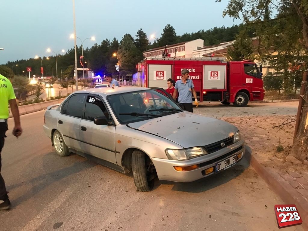 Kontrolden çıkan araç önce yolun sağ tarafındaki kaldırıma ardından da ağaca çarparak durabildi.