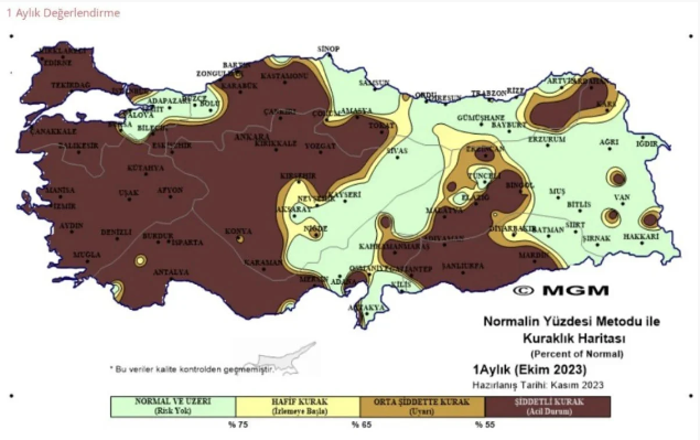 Ekim ayı boyunca Marmara, Ege, Akdeniz ve İç Anadolu bölgelerinde şiddetli kuraklık hissedilirken Doğu Karadeniz, Doğu Anadolu ve Güneydoğu Anadolu Bölgesi’nin bir kısmı hariç kuraklık riski oluşmadı.