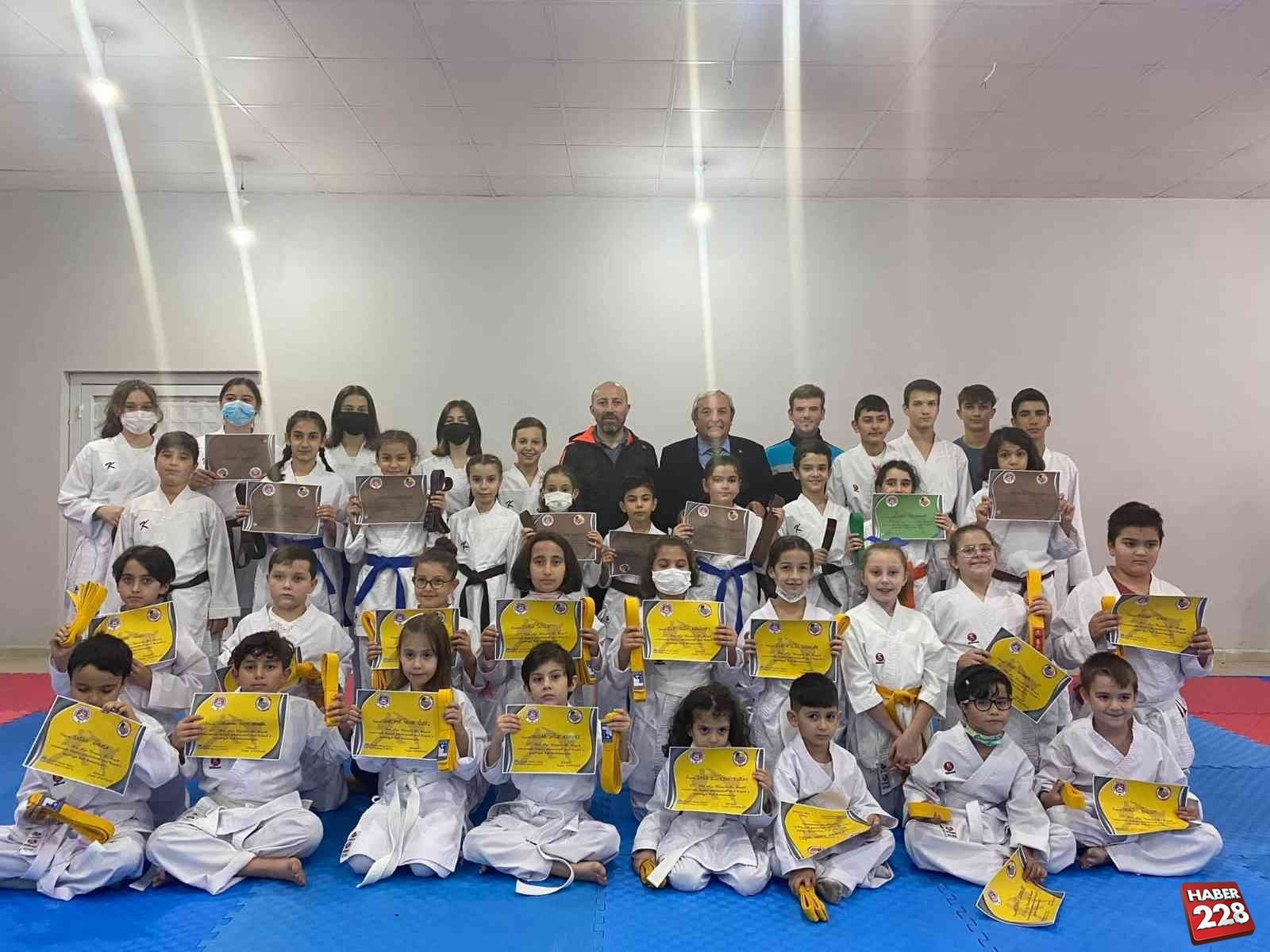 Bilecik’in Osmaneli ilçesinde karate eğitimlerini tamamlayan kursiyerlerden 25’i, kuşak sınavını başarıyla geçti.