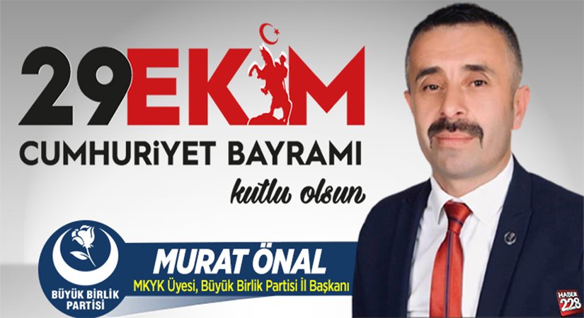 MKYK Üyesi Büyük Birlik Partisi Bilecik İl Başkanı Murat Önal’ın 29 Ekim Mesajı Uğur Baklacı tarafından yayınlandı 28 Ekim 2021, 16:24 yayınlandı + - Paylaş Bu Yazıyı Paylaş veya linki kopyala Kopyala MKYK Üyesi Büyük Birlik Partisi Bilecik İl Başkanı Murat Önal’ın 29 Ekim Mesajı Yorum Yap Paylaş