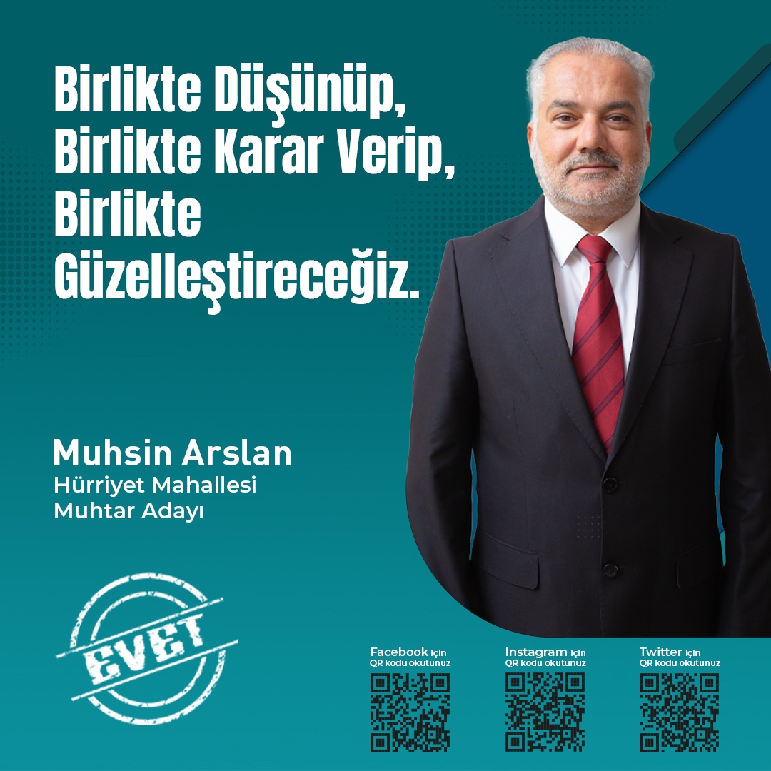 Çeyrek asırlık kamu ve medya tecrübesiyle bu güne kadar ülkesine gece gündüz demeden öz veri ile hizmet eden Muhsin Arslan, tüm donanımı ve birikimiyle yaşadığı mahallesine hizmet vermek için kolları sıvadı.