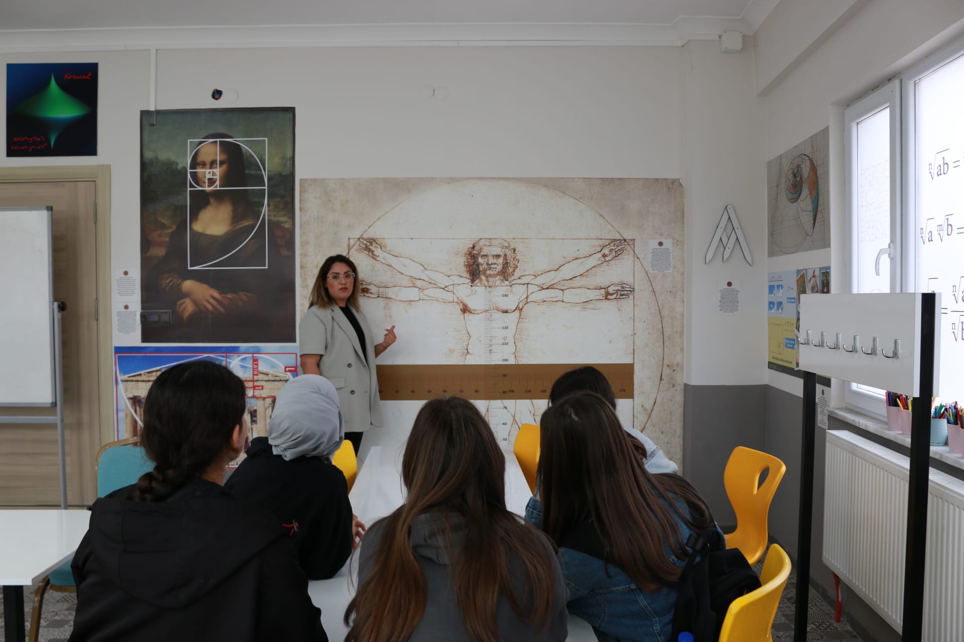 Müzede yer alan matematiksel görselleri de inceleyen öğrencilere, Bilecik Belediyesi Matematik Müzesi Eğitmeni Sevgi Akkoy çeşitli konularda anlatım yaptı.