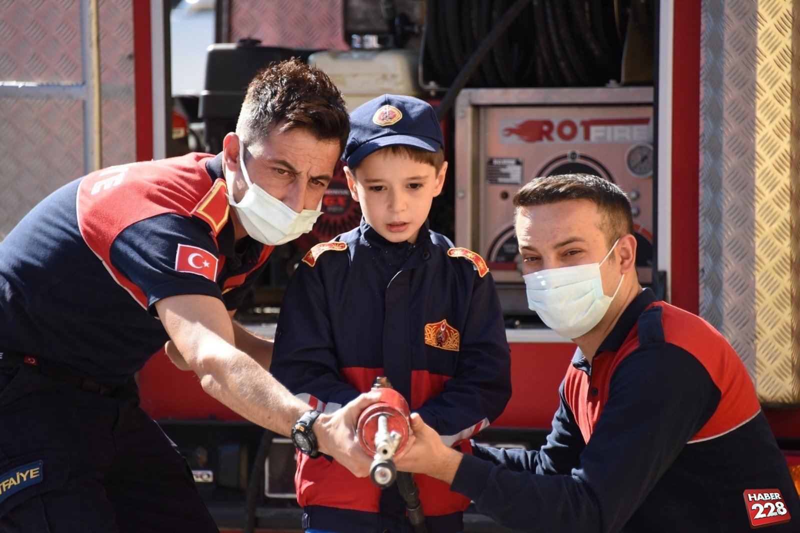 Yangın eğitiminin sonunda eğitimi başarıyla bitiren minik itfaiyecileri tebrik eden Başkan Mehmet Talat Bakkalcıoğlu minik itfaiyecilere çeşitli hediyeler verdi. Hayalleri gerçek olan ve mutlulukları gözlerinden okunan minik itfaiyeciler unutulmaz bir gün geçirdiler. Bu muhteşem günü unutmak istemeyen minikler bol bol hatıra fotoğrafı çektirmeyi de ihmal etmediler.