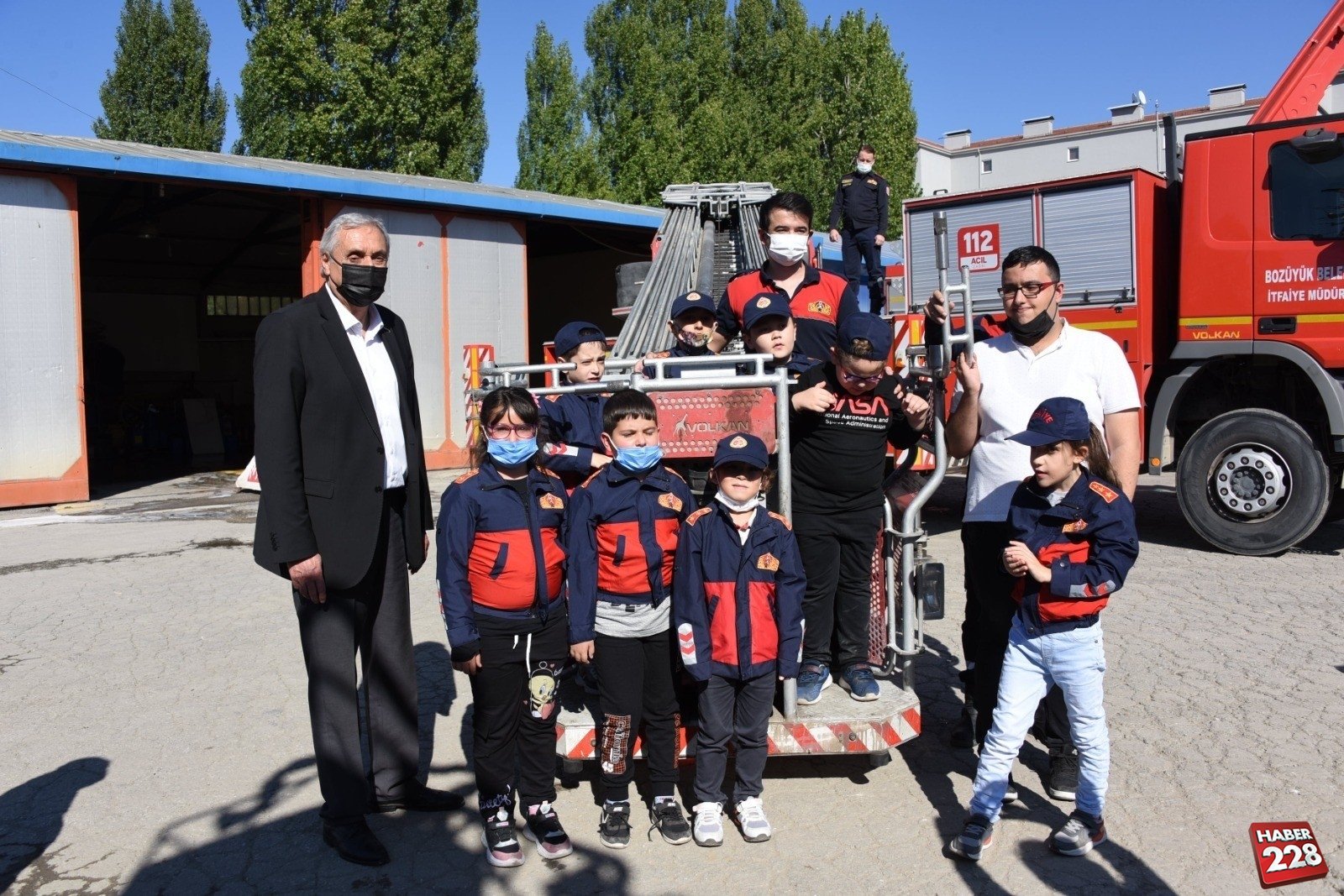 Otizmli ve özel eğitime gereksinim duyan öğrenciler Bozüyük Belediyesi İtfaiye Müdürlüğü’nü ziyaret ederek bir süreliğine itfaiye eri oldular. Bozüyük Belediye Başkanı Mehmet Talat Bakkalcıoğlu, Başkan Yardımcıları Mahmut Fındık ve Ali Şahinoğlu’nun bizzat karşıladığı ve yakından ilgilendiği minikler büyük bir heyecanla itfaiyeci kıyafetlerini giydiler, İtfaiye araçlarına bindiler ve yangın söndürme hortumu kullanarak yangın söndürdüler. Minikler, itfaiyeci amcalarından yangın ve yangın söndürme, yangın müdahale aracı, arama kurtarma aracı ve diğer ekipmanlar hakkında bilgi alırken kendilerine özellikle yangın sırasında neler yapmaları gerektiği anlatılarak, yangın durumunda derhal 112’yi aramaları istendi.