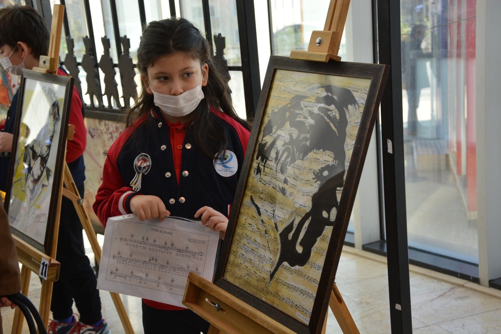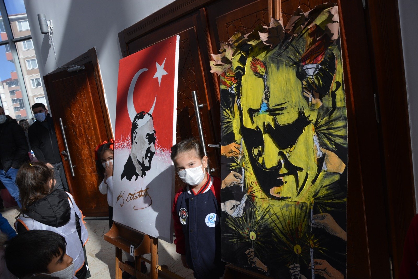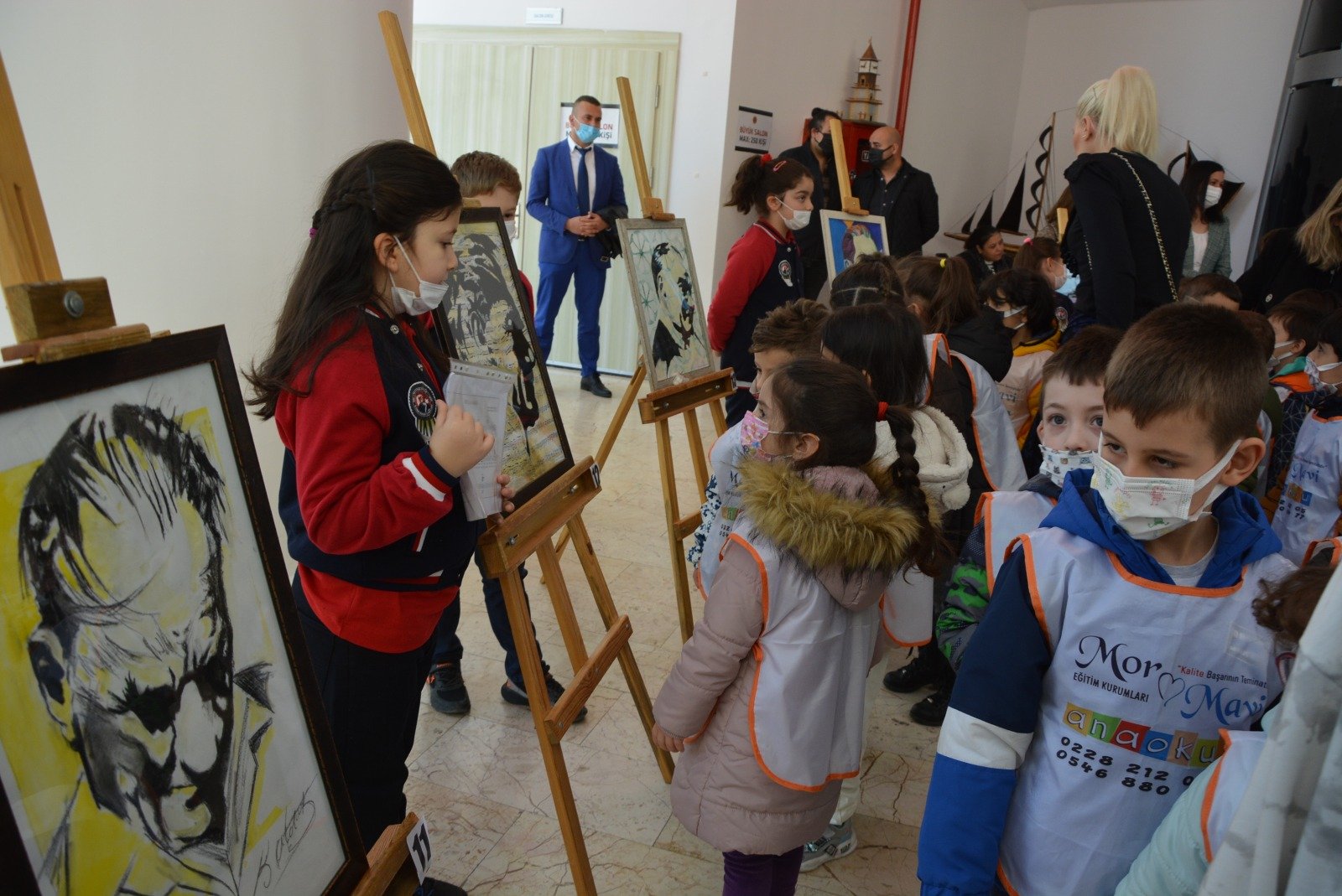 Ardından katılımcılar müzik dinletisi eşliğinde Özel Edebali Şehir Koleji öğrencilerinin yapmış olduğu resim sergisini gezerek 21 Atatürk portresini inceledi.