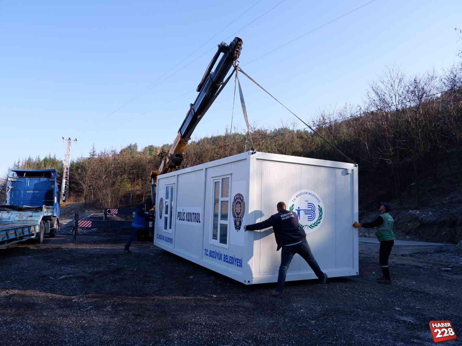Bozüyük’te güvenliğini sağlamak amacıyla nöbet tutacak olan emniyet mensupları için Bozüyük Belediyesi tarafından hazırlanan polis kontrol noktası konteynırının zemin çalışmaları tamamlanmıştı. Ardından vinç yardımı ile bölgeye getirilen polis kontrol noktası konteynırının polislerin de yardımı ile yerine yerleştirildi. Ekipler, Bozüyük Belediyesine konteynır için teşekkür ederken, görevlilerin bundan sonra daha rahat hizmet vereceği belirtildi.