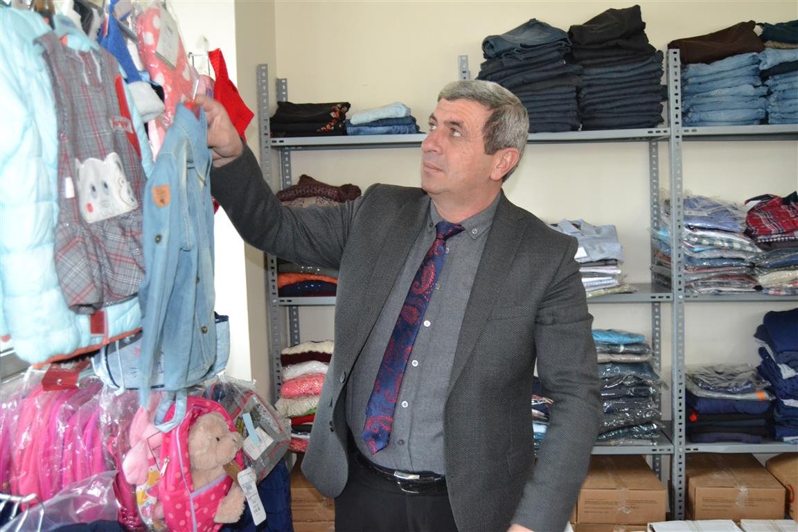 Belediye binasını giriş katında açılan odada her yaşta kişi için giyecek, medikal malzemesi ve gıda bulunuyor.