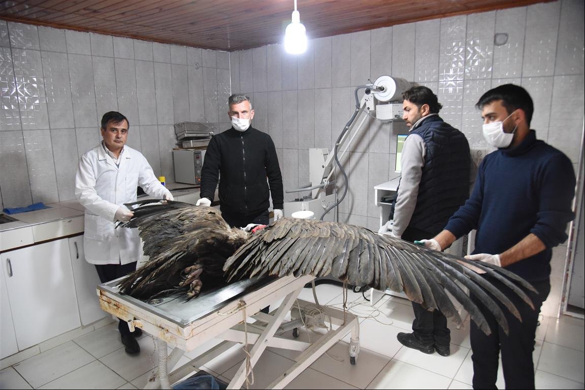Veteriner İşleri Müdürü Nedret Avcı, Tedavi ve Rehabilitasyon merkezinde röntgen filmi çekilen yaralı kara akbabanın kanatlarında kırık tespit ettiklerini belirterek, şunları söyledi: