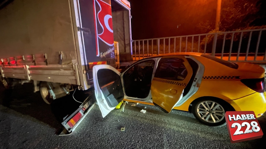 Alınan bilgiye göre, Sakarya-Bilecik D-650 karayolunda Sakarya istikametinden Bilecik istikametine giden M.D. yönetimindeki 54 T 5540 plakalı ticari taksi, Teşvikiye Mahallesi mevkisinde yol çalışması nedeniyle tek şeride düşen yolda aynı istikamete giden C.B. idaresindeki 16 BRY 250 plakalı demir boru yüklü kamyonete arkadan çarptı.