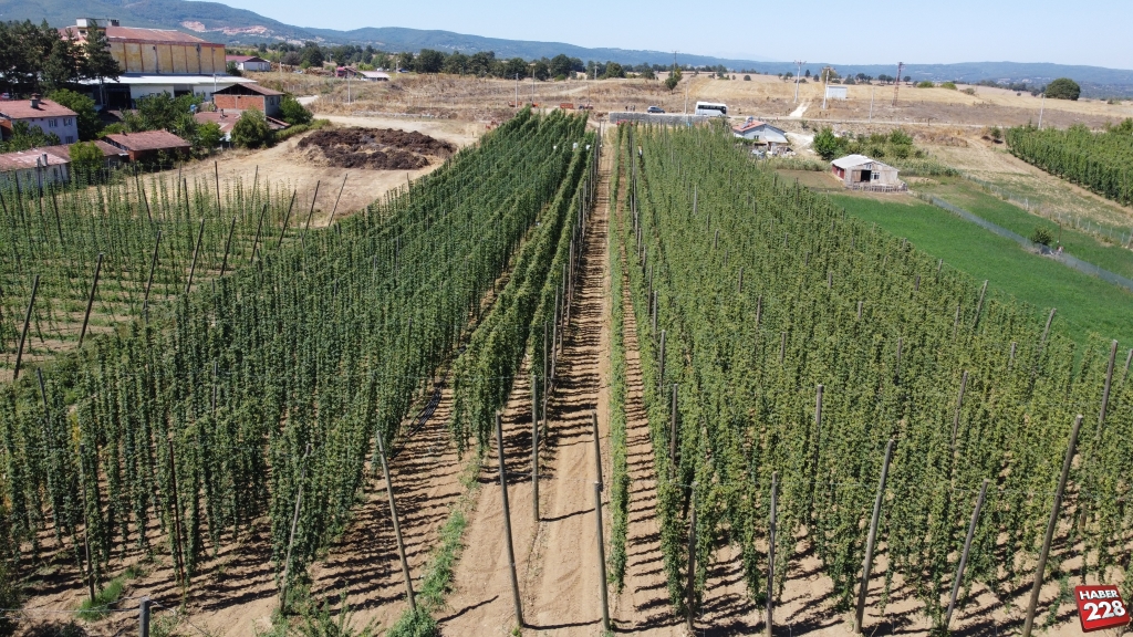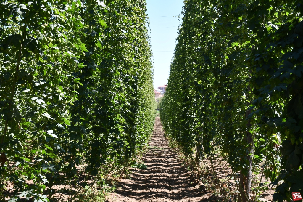 Çok yıllık endüstriyel bir bitki olan şerbetçiotunun, ilçedeki yaklaşık 1400 dekarlık alanda “aroma”, “brewers gold”, “Erciyes”, “Ege” ve Pazaryeri” cinslerinin üretimi yapılıyor.