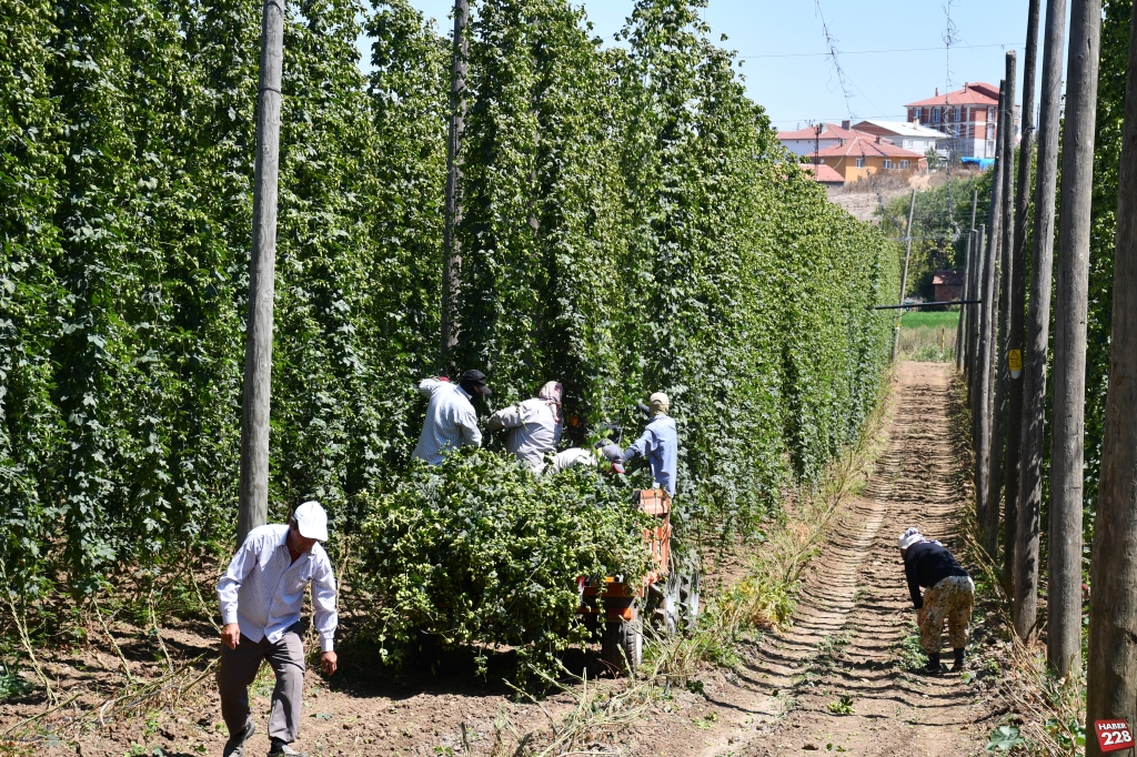 Türkiye’de yalnızca Bilecik’in Pazaryeri ilçesinde üretilen şerbetçi otunun hasadı ilçe genelinde başladı.
