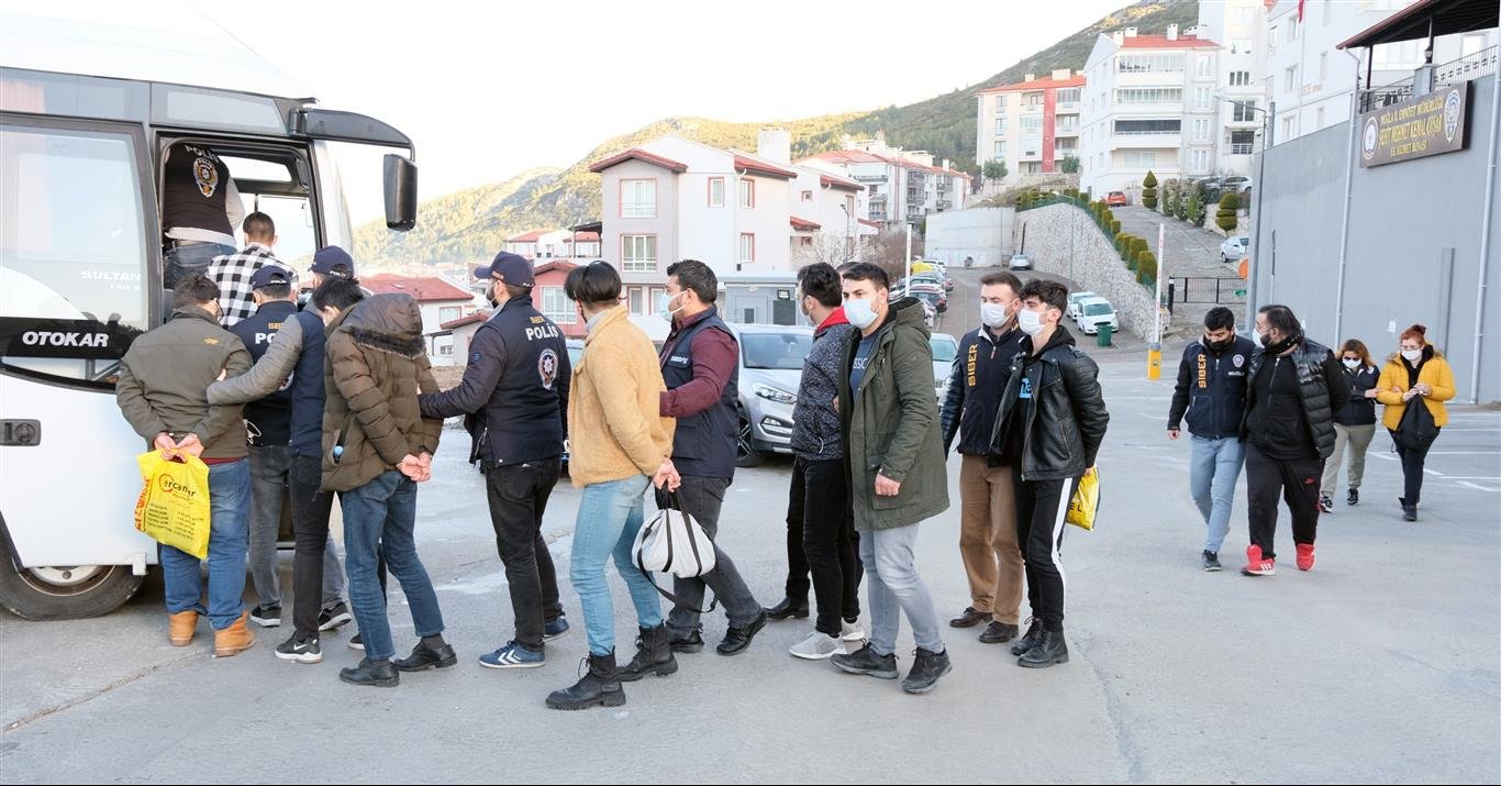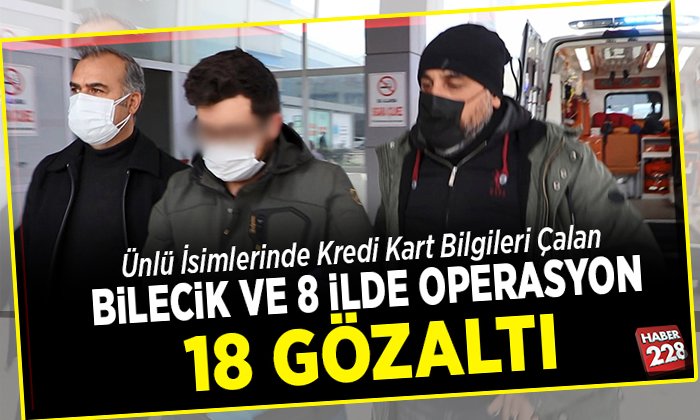 Muğla merkezli aralarında Bilecik’inde bulunduğu 9 ilde eş zamanlı düzenlenen operasyonda Türkiye genelinde 25 bin kişinin kredi kartı ve kimlik bilgilerini çalarak dolandıran ve gözaltına alınan suç şebekesi şüphelileri adli makamlara sevk edildi.