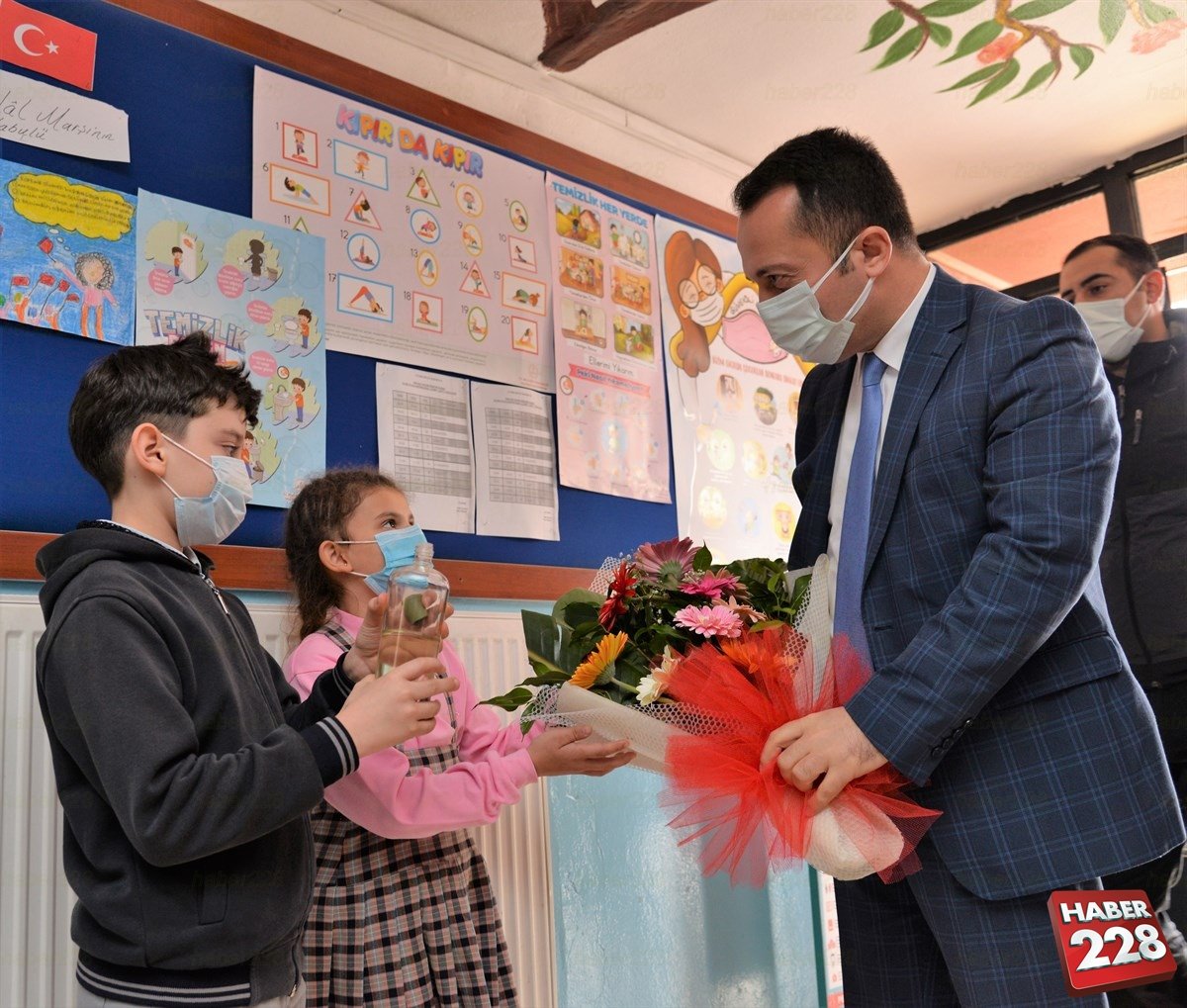 Çocuklara virüse karşı ”okulda neye dikkat etmeliyiz”? sorusuna, çocukların maske, mesafe ve temizlik kurallarına uymalıyız cevabı vermeleri üzerine Vali Şentürk, ”Çocuklarımız bilinçli”, hep birlikte virüsü yeneceğiz, değerlendirmesinde bulundu.