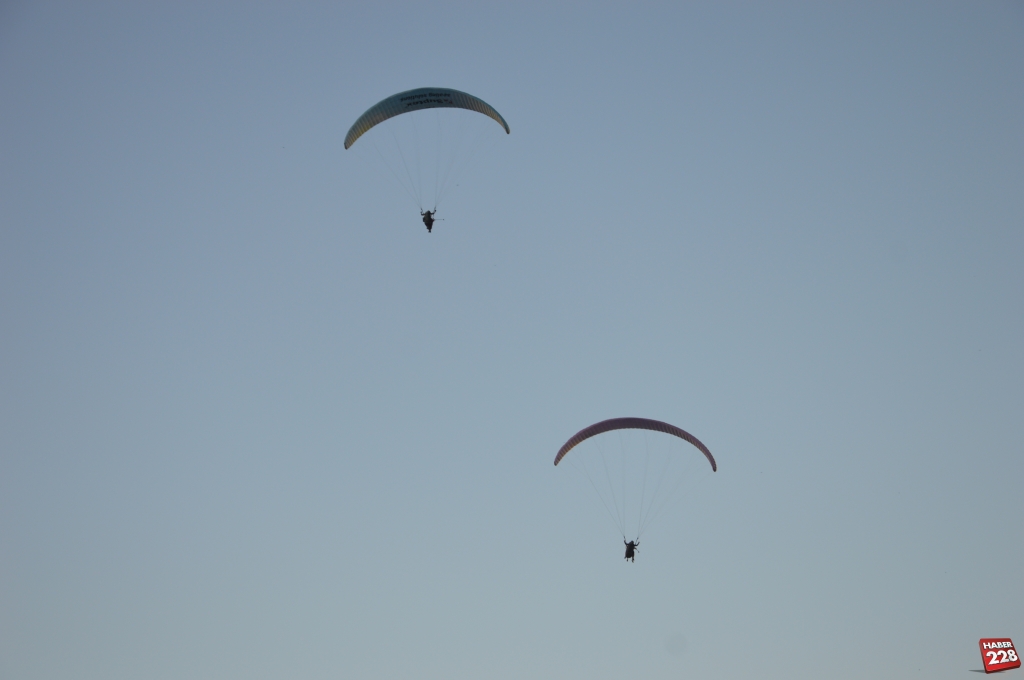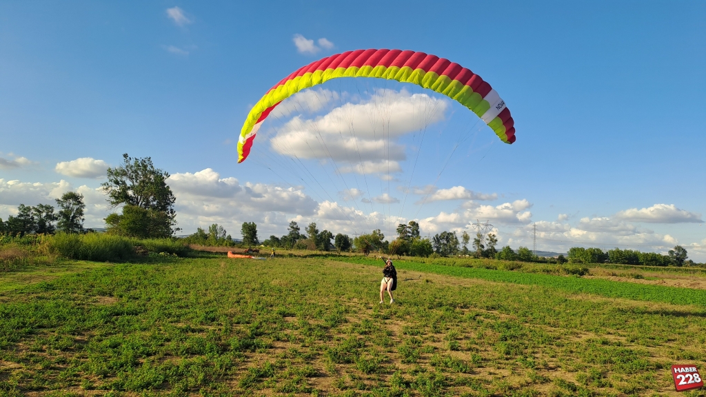 Yamaç paraşütü eğitimlerine katılan pilotu adayları, teorik ve uygulamalı eğitimlerinin ardından ilk uçuşunu gerçekleştiriyor.