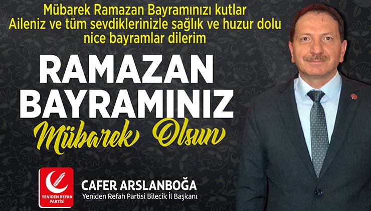 Yeniden Refah Partisi Bilecik İl Başkanı Cafer Arslanboğa’nın Ramazan Bayramı Kutlama Mesajı Uğur Baklacı tarafından yayınlandı 1 Mayıs 2022, 19:06 yayınlandı + - Paylaş Bu Yazıyı Paylaş veya linki kopyala Kopyala Yeniden Refah Partisi Bilecik İl Başkanı Cafer Arslanboğa’nın Ramazan Bayramı Kutlama Mesajı Yorum Yap Paylaş