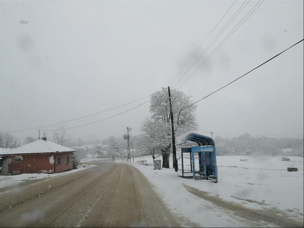 Bilecik’in Pazaryeri ilçesindeki yüksek kesimlerde sıcaklık 10 derece kadar düşerken, Ahı Dağı yolu tekrar beyaza büründü.