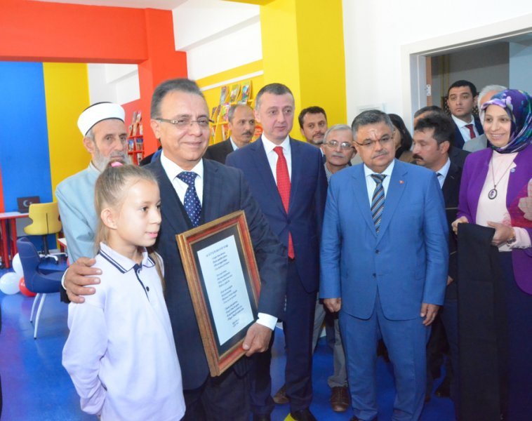 Şehit Kaymakam Muhammed Fatih Safitürk Ortaokulunda hayırsever iş adamının katkılarıyla yaptırılan zenginleştirilmiş kütüphanenin açılışı gerçekleştirildi.