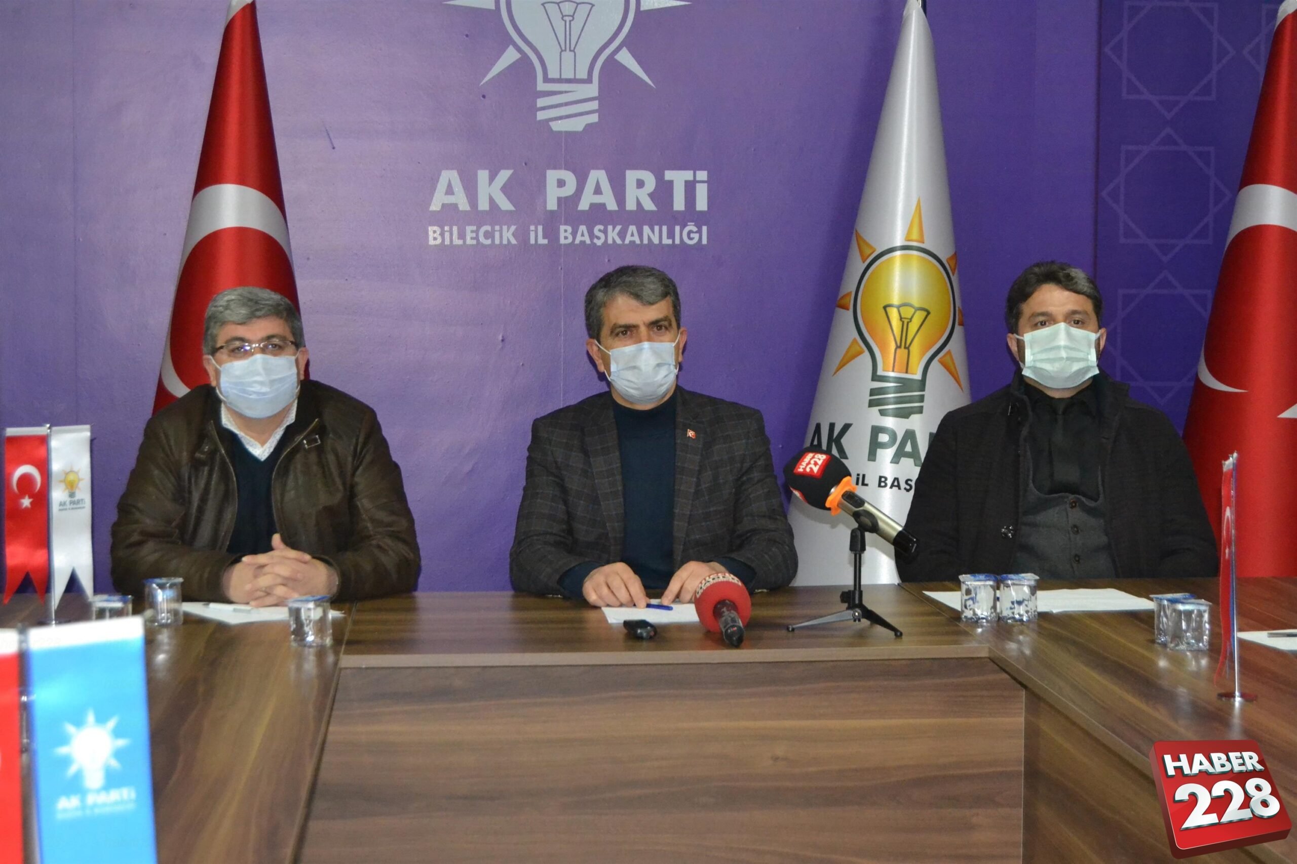 AK Parti Bilecik Merkez İlçe Başkanı Nail Öztürk, Belediye Meclisi Üyesi Çetin Kaya ile önceki dönem Belediye Başkanı ve İl Yönetim Kurulu Üyesi Nihat Can, Bilecik Belediyesi tarafından gerçekleştirilecek ihale ile ilgili basın açıklaması gerçekleştirdi.